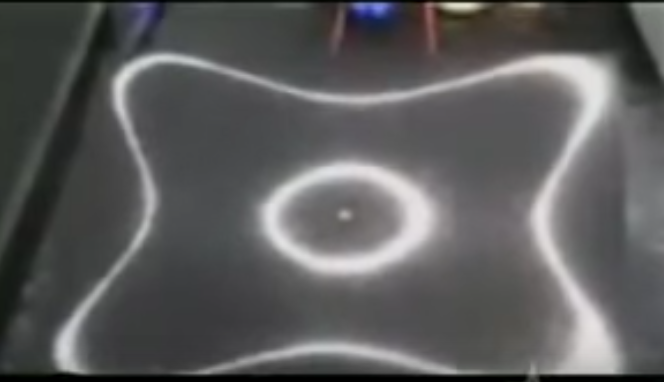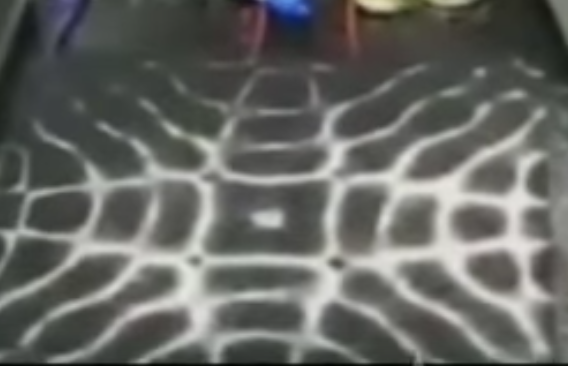 Dr Hans Yenny did a large amount of experiements with sound called Cymatics this is where he added sand to water drops and then applied different sound frequencies to that medium and the resulting geometric shapes are astonishing and here you can see what each note looks like at the bottom of the graph.Note that the geometry from the flat note to the higher octave sharp note increases in complexity but has very similar geometric shapes. Here is a displays the sound using different speed/frequencies changing into Secret geometry.....Using Sand.